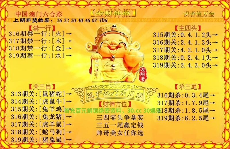 | 318期:发财五尾【2.3.4.7.9】开:鼠06 |