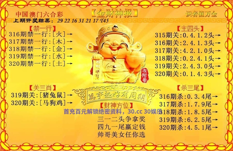 | 316期:发财五尾【1.4.5.6.9】开:马24中 |